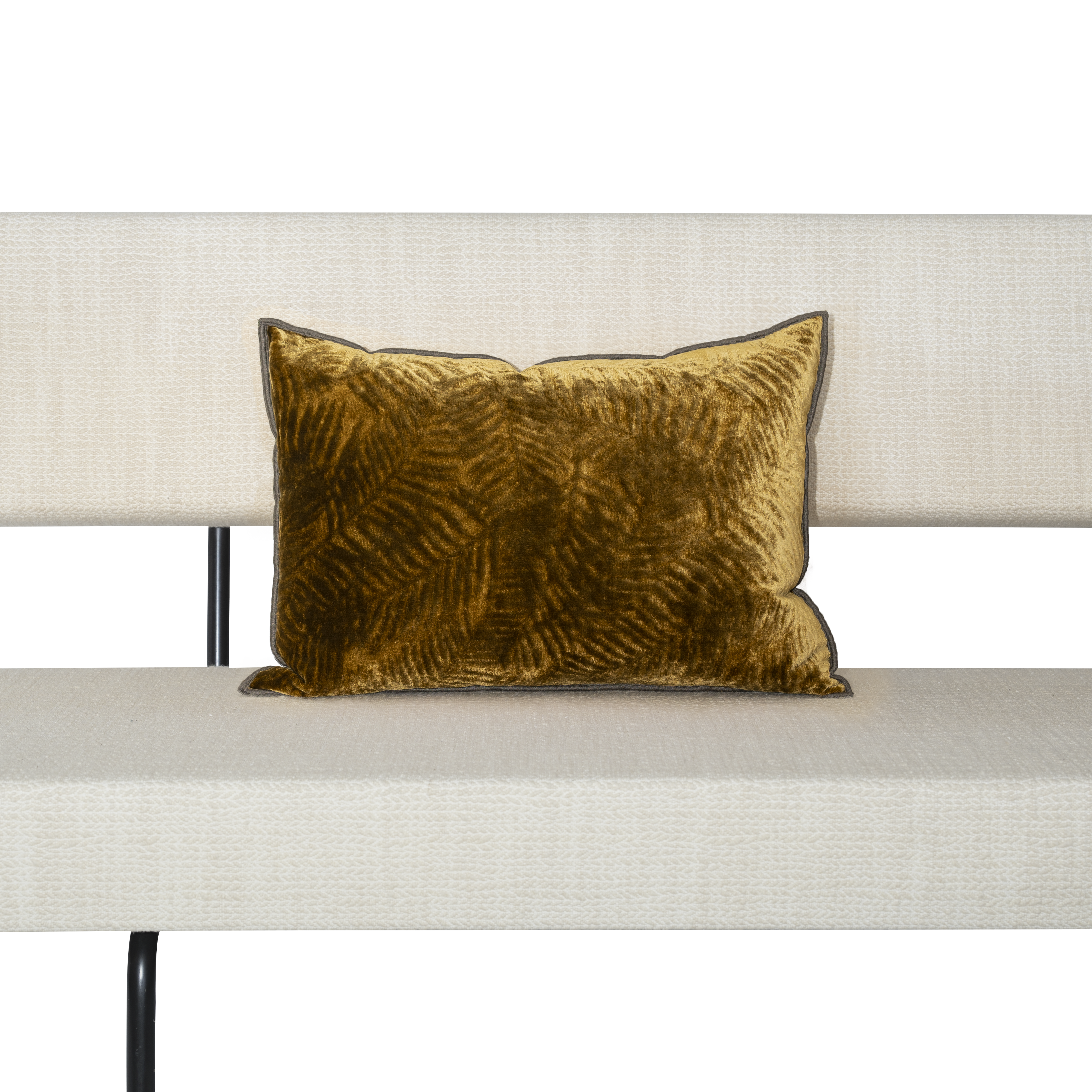 Housse de coussin velours jacquard, doublée d’un voile de coton lavé, zip invisible.